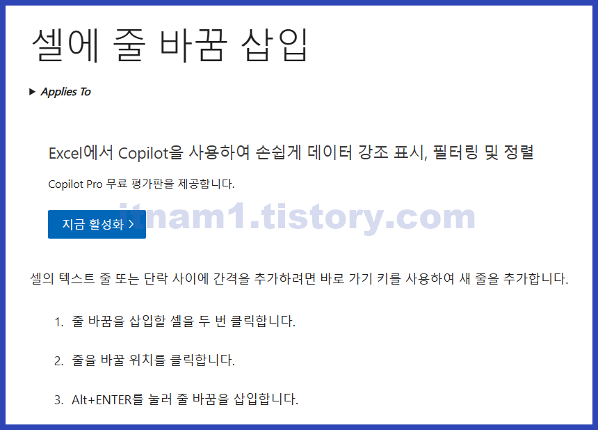1. 줄바꿈 바로가기: Alt + Enter