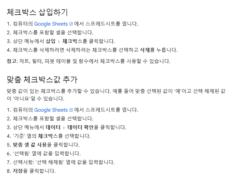 - 체크박스를 클릭하면 'TRUE' 또는 'FALSE' 값을 셀에서 확인할 수 있습니다.