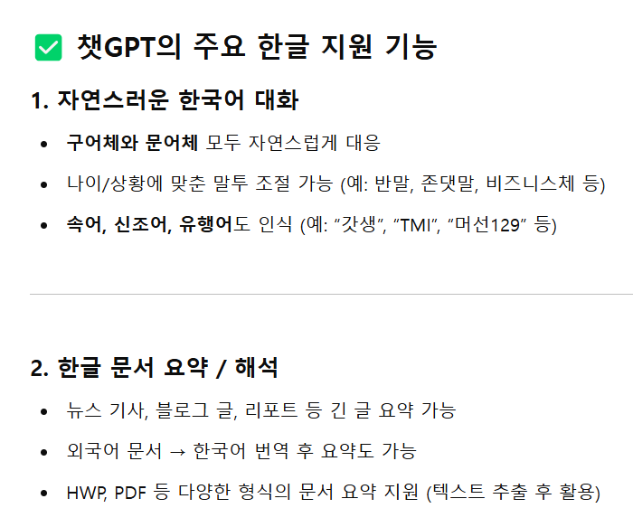 챗GPT의 주요 한글 지원 기능