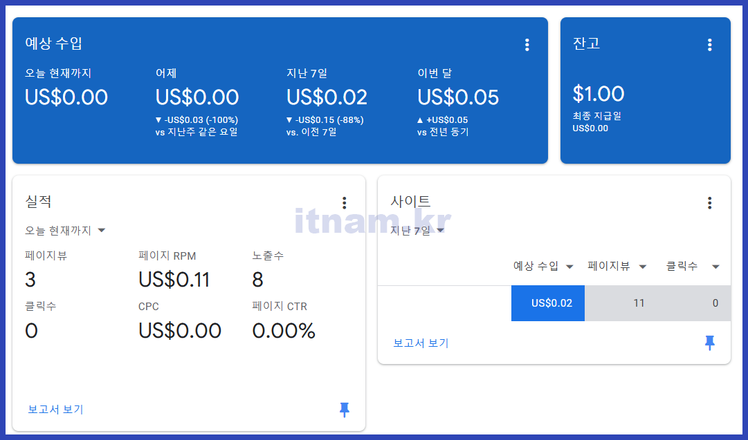애드센스 수익은 기준액 도달 후 전자송금 방식이 가장 빠릅니다.