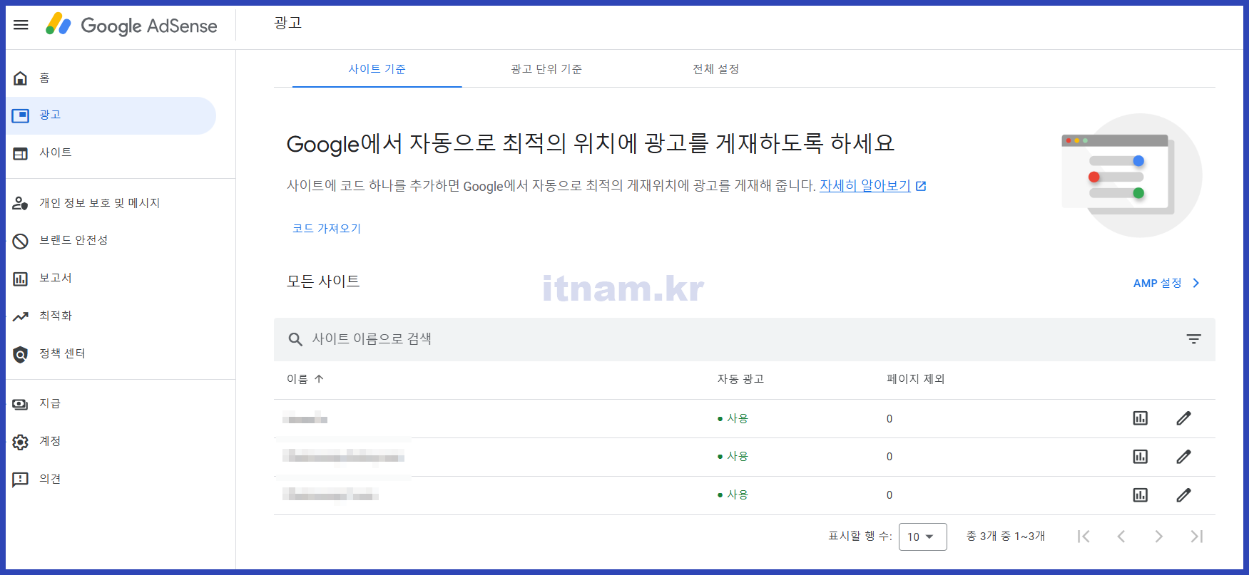 - Google 애드센스 계정에 로그인합니다.